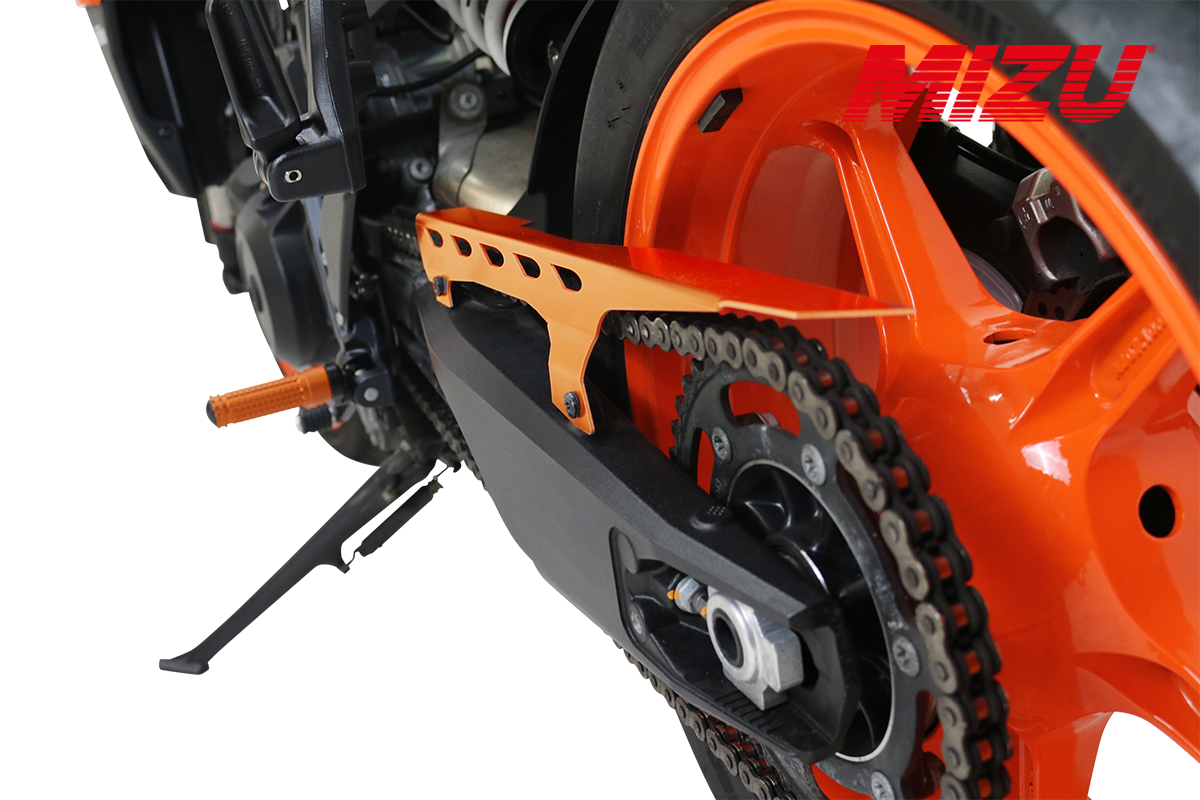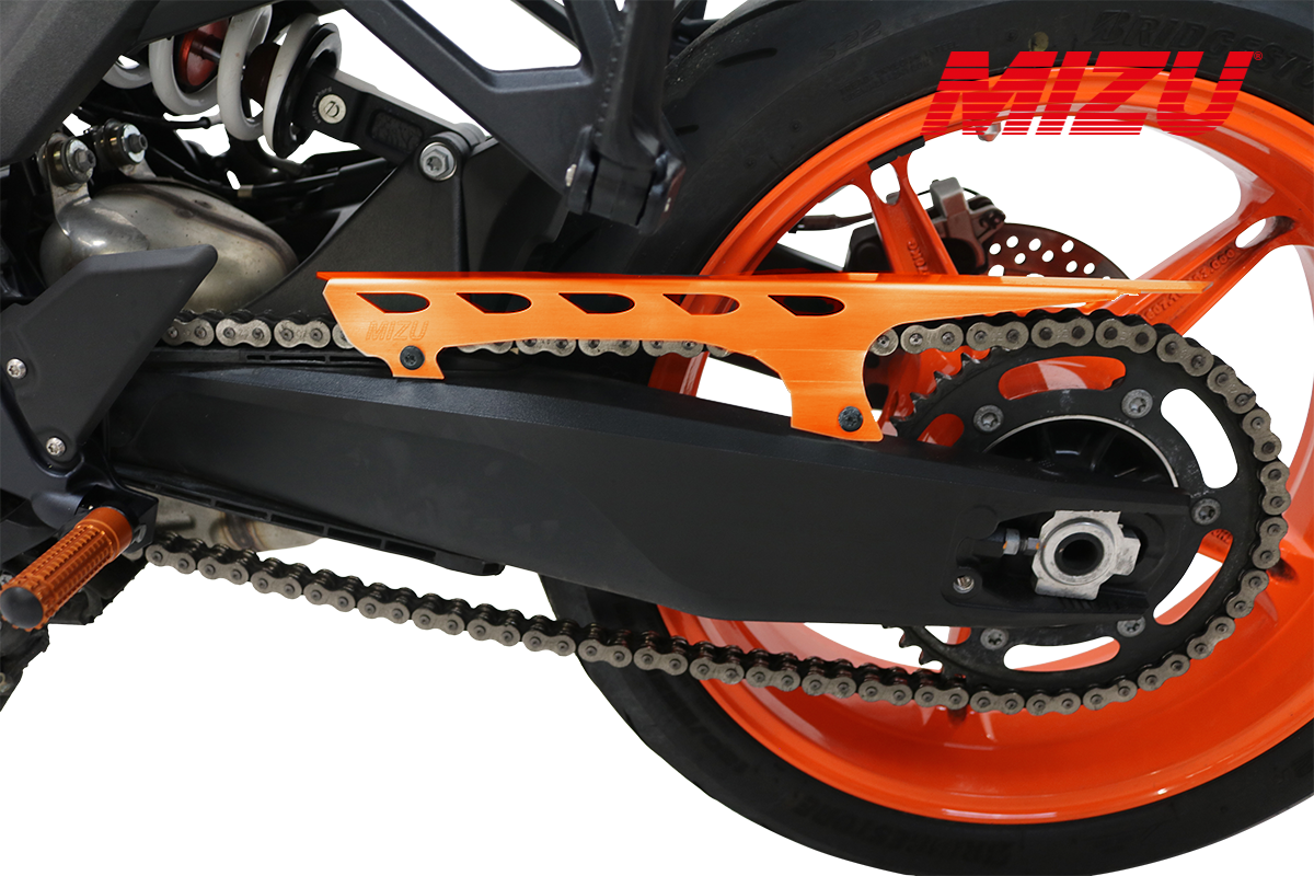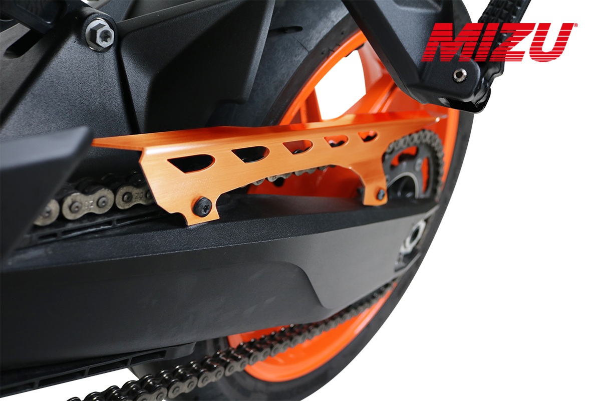 Ersetze jetzt den alten Kunststoff-Kettenschutz und gönn deinem Motorrad den exklusiven MIZU Design-Kettenschutz aus Aluminium.