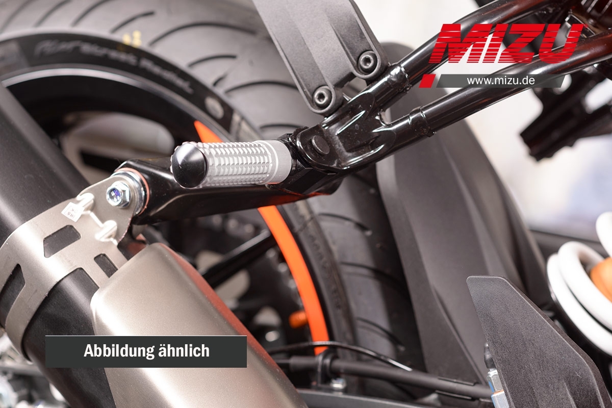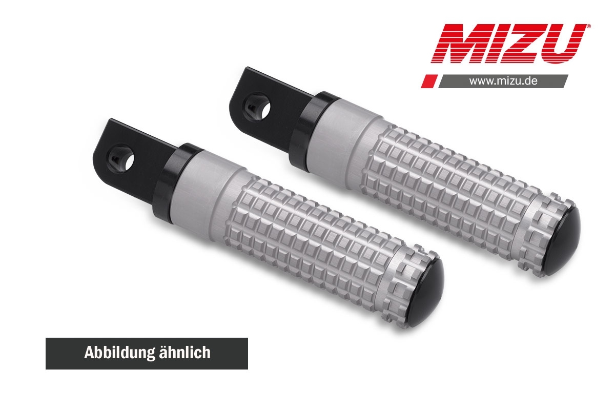 Unsere MIZU Race Fußrasten sind maximal belastbar, sorgen durch ihre gefräste Oberfläche für idealen Halt, und bieten Sicherheit in jeder Situation. Verabschieden Sie sich von Ihren alten unhandlichen Fußrasten und tauschen Sie sie durch unsere leichten sportlichen Race Fußrasten aus. Damit sich der Fahrspass nicht nur auf die Rennstrecke beschränkt, werden unsere Fußrasten mit ABE geliefert und ermöglichen den Zugang zu Rennmaterial für den Alltag.