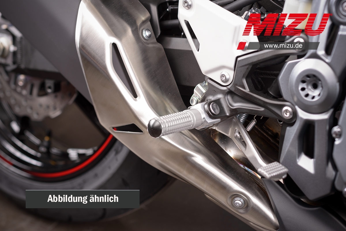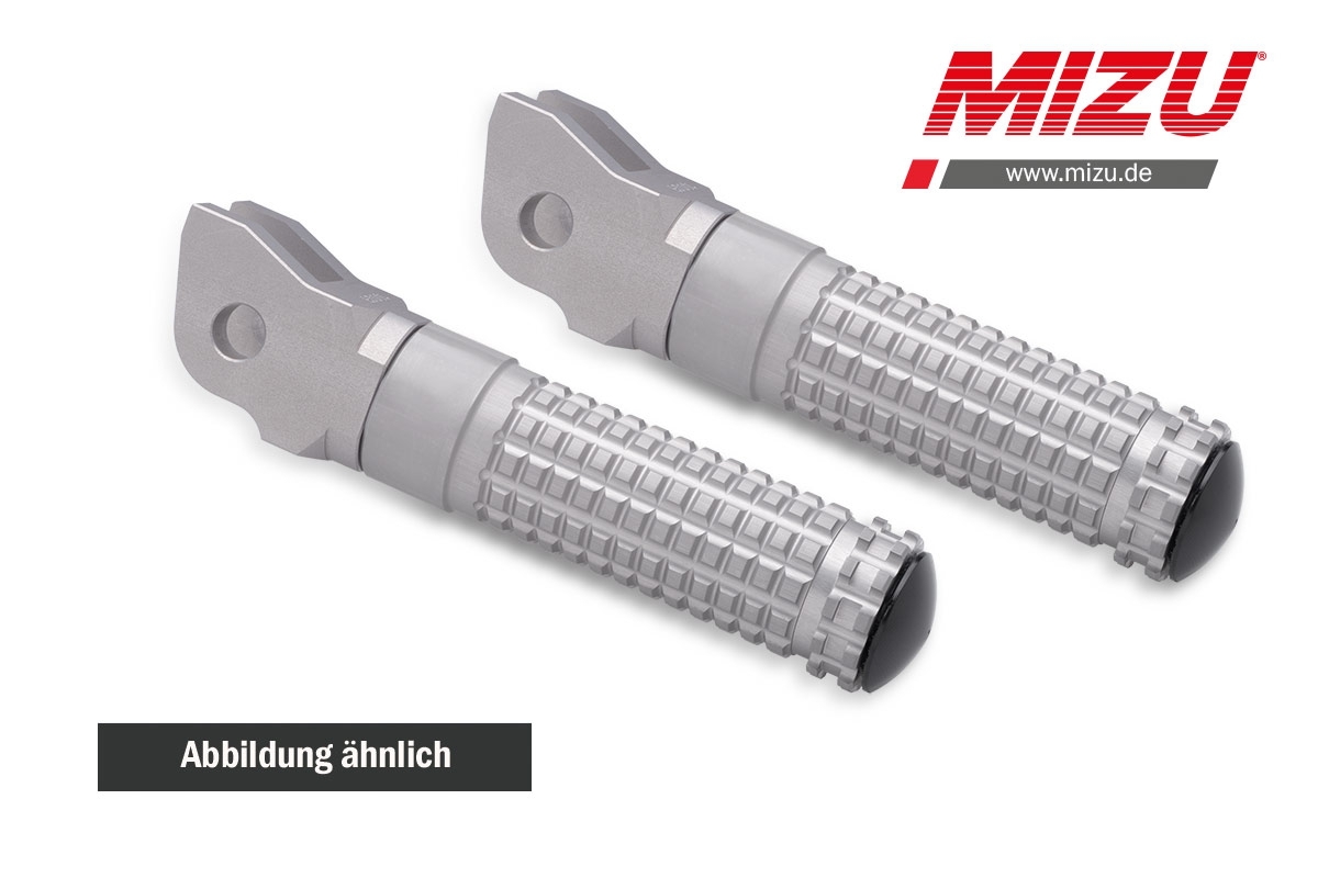 Our MIZU Race footpegs are maximally resilient, provide ideal grip through a milled surface, as well as security in every situation. Say goodbye to your old unwieldy footpegs and swap them with our lightweight sporty race footpegs. So that the driving pleasure is not limited to the racetrack, our footrests are delivered with ABE (Vehicle operation licence) and allow access to racing gear for everyday use.